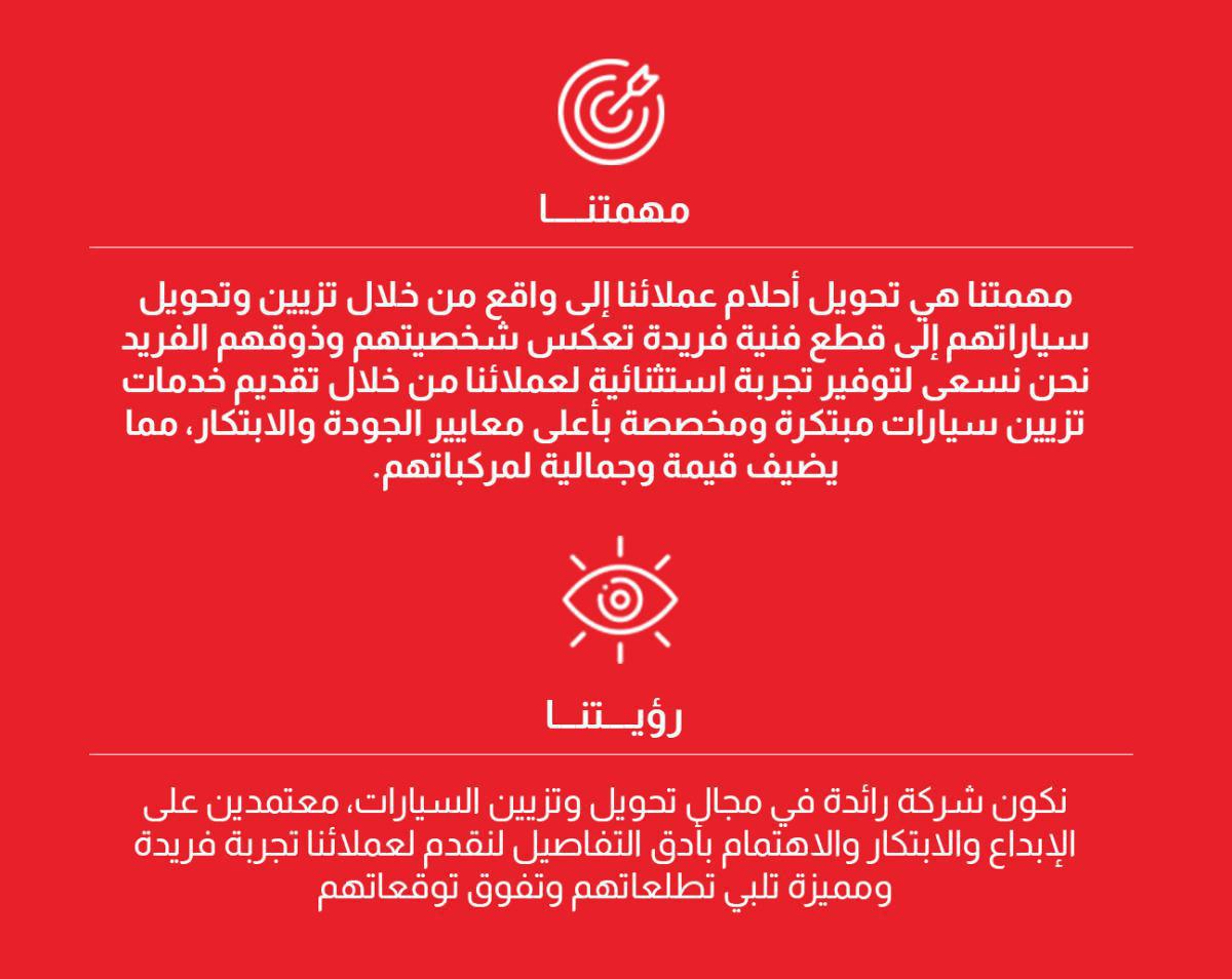 1. تعزيز الشركة كوجهة رائدة في مجال تحويل وتزيين السيارات.